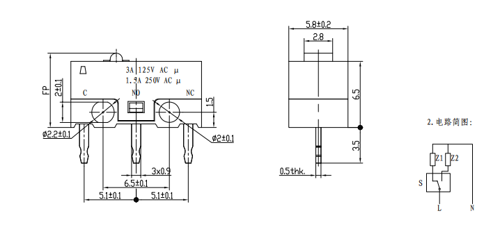 | 1 | Elektrische Nennleistung: 1A/3A 250VAC |